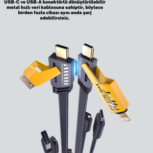 Örgülü Tasarım 4’ü 1 Arada USB-C Lightning Hızlı Şarj Kablosu
