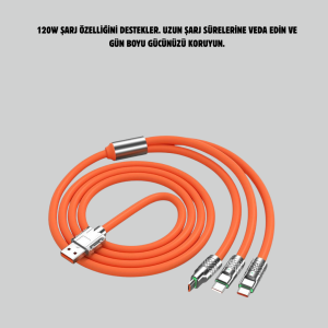120 W Şarj ve Veri Aktarımı Kablo– 3 Başlıklı Çok Amaçlı Kablo Yüksek Hızlı