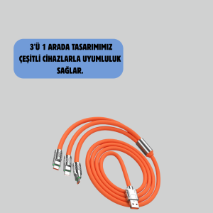 3’ü 1 Arada Kablo – 120W Hızlı Şarj ve Veri Aktarımı Özellikli