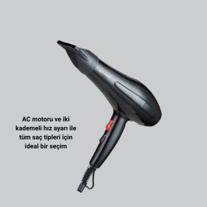 Profesyonel 2200W Fön Makinesi – AC Motorlu, Hızlı Kurutma, Hafif Tasarım