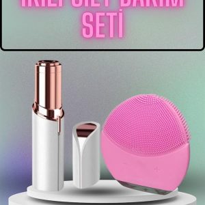 KAŞ BIYIK VE YÜZ EPİLASYON ALETİ VE TİTREŞİMLİ YÜZ TEMİZLEME MASAJ ALETİ İKİLİ SET