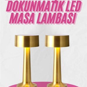 Altın Rengi Masa ve Gece Lambası Dokunmatik Şarjlı Masa Lambası