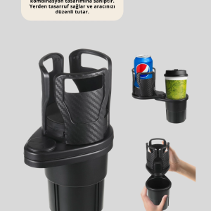 Otomobil Bardak Tutucu İkisi Bir Arada 360° Dönebilen Geniş Kapasiteli