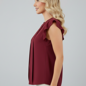 Yuvarlak Pileli Yakalı Kol Detaylı Rahat Kesim Kısa Kol Şık Ve Cool Bluz