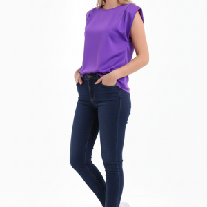 Yuvarlak Yaka Kolsuz Vatkalı Rahat Kesim Düğmeli Şık Ve Cool Saten Bluz