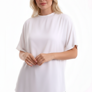 Drapeli Yuvarlak Yaka Kısa Kol Fermuar Kapamalı Geniş Kesim Dökümlü Cool Ve Şık Saten Bluz