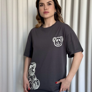 Rahat Ve Şık Kısa Kollu Bisiklet Yaka Likralı Viskon Penye Body Füme