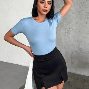 Rahat Ve Şık Kısa Kollu Bisiklet Yaka Likralı Viskon Penye Body Bebe Mavisi