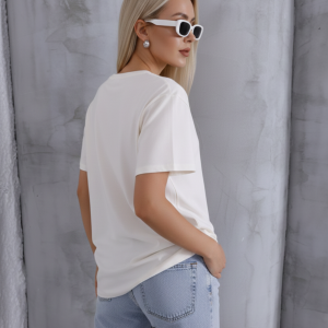 Rahat Ve Şık Kısa Kollu Bisiklet Yaka Likralı Viskon Penye Body Beyaz