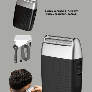 Mikro titreşim motorlu, düşük sesli, USB girişli tıraş makinesi