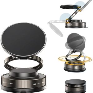 Metalik Magsafe Telefon Tutucu Tüm Yüzeylerle Uyumlu Vakumlu 360 Dönen Oynar Başlık